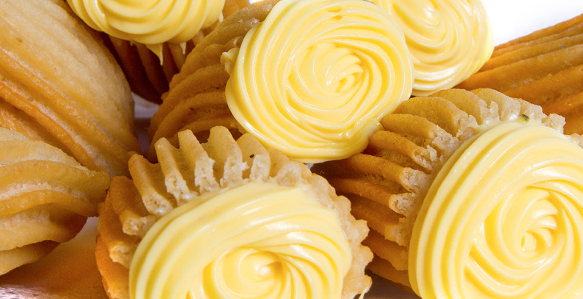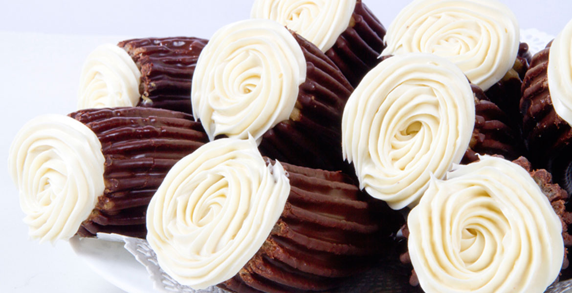 salpicado de oro y relleno de chocolate blanco.